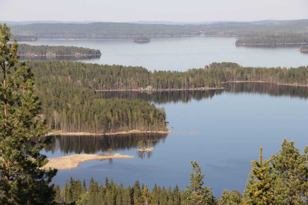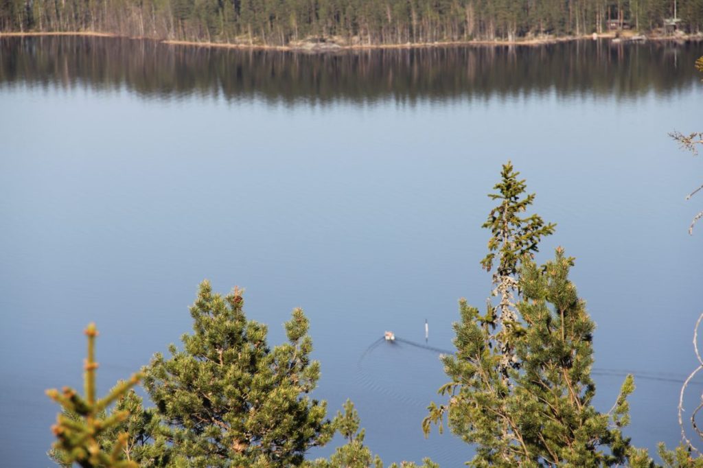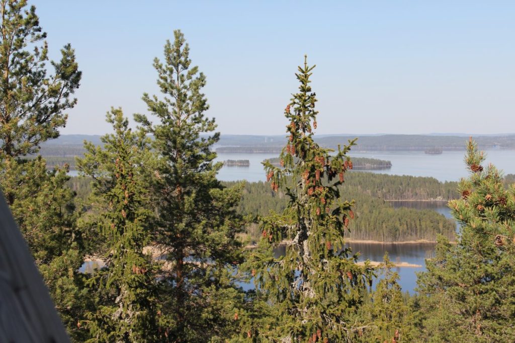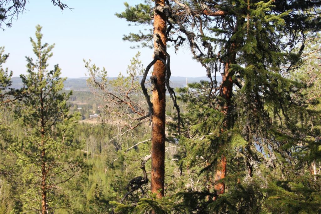 Oravinvuoren huipulle piti kivuta hiki päässä. Näkötornin juurelta etsimme syrjäisen jyrkänteen reunan, josta aukesi komea yksityinen maisemapala.