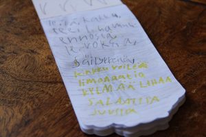 Lapset olivat opiskelleet kirjansa hyvin. Kuvauksia ihanista retkieväistä oli keräilty Viisikoista ja Seikkailujen sarjasta, ja kaikki yksityiskohdat oli kirjoitettu horjuvin kirjaimin muistivihkoon. Vihkon kanssa mentiin kauppaan ja tuotiin salaperäisyyden verhoamat kassit vaivihkaa kotiin.