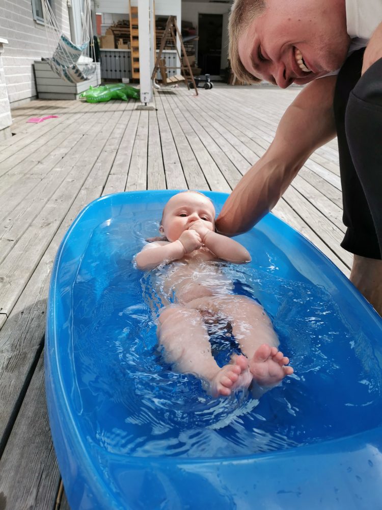 Vilppu oppi kesän aikana nauttimaan kylpemisestä.
