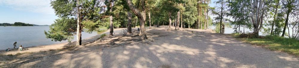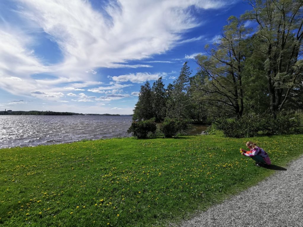 Kotikulmilta on tämäkin niemennokka. Ei uskoisi, että kauniin niityn alle kätkeytyy vanhan sahan jäänteet, tai tarkemmin sanoen sahan saastuttama maa-aines, jolle ei ole voitu tehdä muuta kuin kapseloida ja maisemoida se näkymättömiin. Mutta ei niin pahaa, ettei jotain hyvääkin! Jos maa olisi tervettä, tätä kaunista retkikohdetta tuskin olisi – kalliita rantatontteja vain.