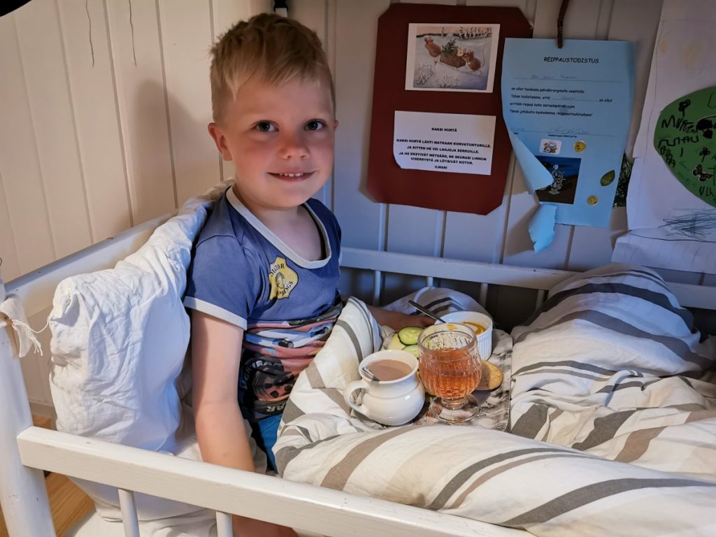 Kesä alkaa virallisesti Ilmarin synttäreistä. Viisivuotias oli tarkkana siitä, että aamupala tuodaan merkkipäivänä sänkyyn.