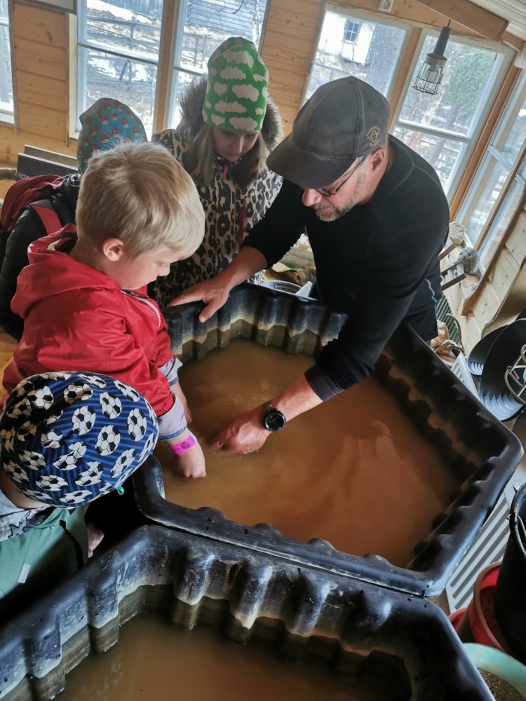 Meillä on iso porukka, joten teimme lopulta kaikkea: pienimmäinen kullanhuuhtoja löysi hippunsa ohjatusti, isommat taas huuhtoivat hiput esiin kultapussista ja kaikki kokeilivat onneaan lähimmällä Liiton valtauksella, josta sieltäkin löytyi muutama hippu lasiputkeen talletettavaksi!