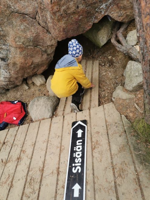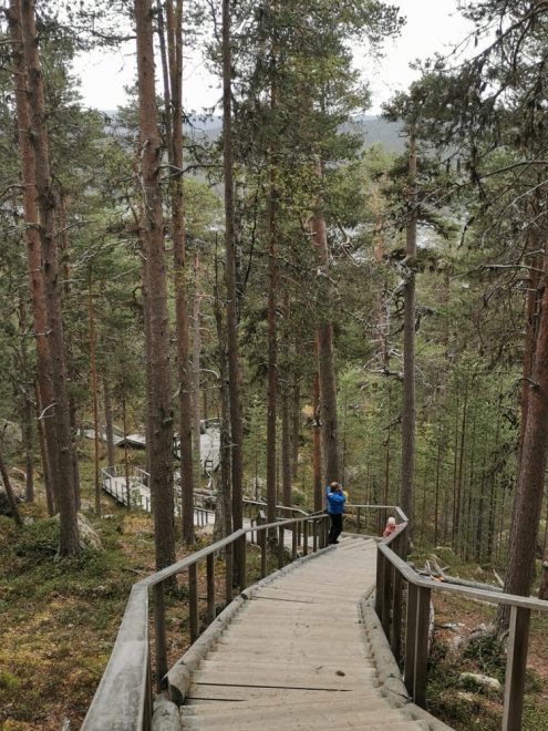 Portaat ovat sulat ja kuivat, vaikka metsässä ja poluilla olisikin lunta. Porraskohteita ovat esimerkiksi edellämainittu Kiilopää sekä Ivalon toiselta puolen löytyvä Karhunpesäkivi, jonka uumeniin voi ryömiä vaikka sadettakin pitelemään. Kivi oli tosi hieno ja nousu sinne helppo, mutta täytyy sanoa, että petyin ”Inarinjärven näköalaan”, joka olisi pitänyt aueta pesäkiven jälkeen olevalta näköalatasanteelta. Kyllä se järvi siellä pilkahti sinisessä horisontissa, mutta eipä paljon muuta.