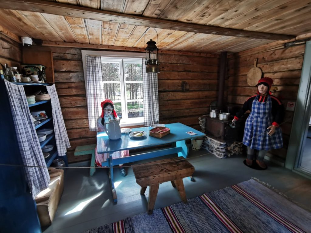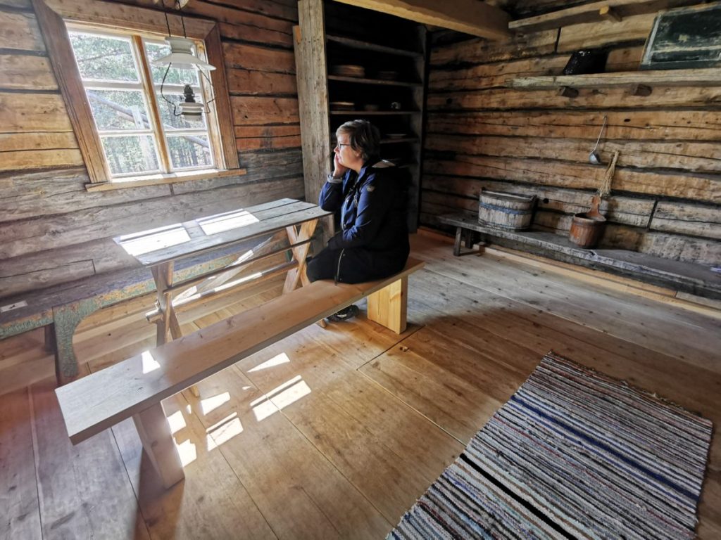 Minun mielestäni ulkoilmamuseo oli mitä hienoin, ainutlaatuinen, ja siellä oli monta mahtavaa eväspaikkaa esimerkiksi järven rannalla, joen rannalla tai hirsimökin portailla – ja niitä penkkejäkin oli useita – ja sitä paitsi ei voi olla totta, että valtavaa Inarinjärveä ei voisi ihailla lukemattomista paikoista tässä vaaramaastossa! Oliko tuossa museovirkailijan asenteessa jotain lappilaista?