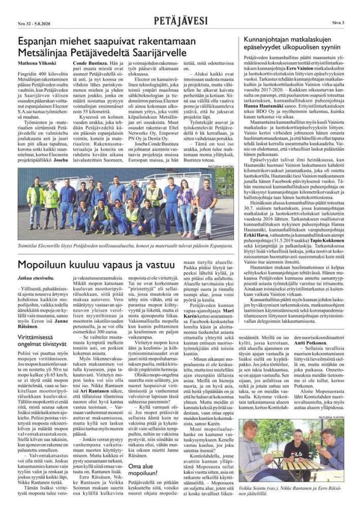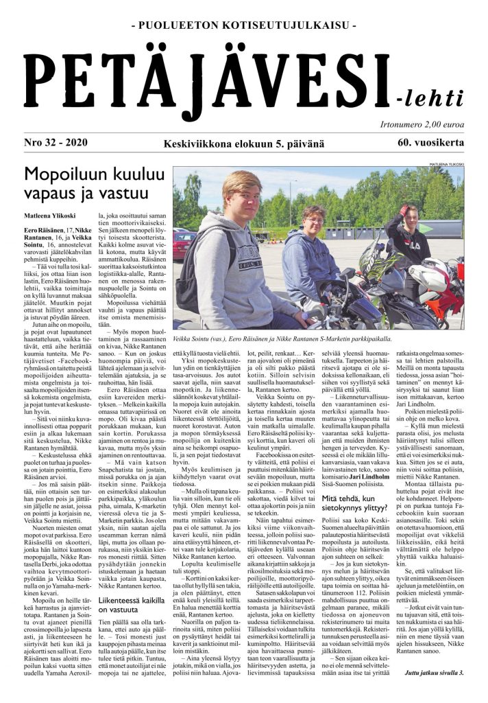 Sovittelujournalistinen lähestymistapa ikuiseen kiistakysymykseen nimeltä mopoilevat pojat. Juttu julkaistu Petäjävesi-lehdessä 5.8.2020.
