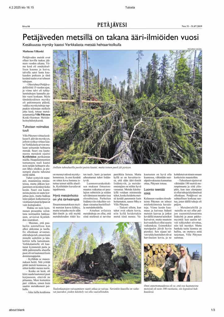 Lisää ilmastojournalismia paikallisessa kontekstissa. Juttu julkaistu Petäjävesi-lehdessä 31.7.2019.